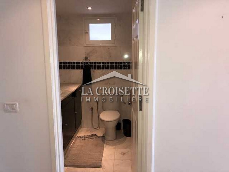 La Croisette Immobilière Tunisie vous propose à la location un appartement meublé S+3 occupant le deuxième étage d’une résidence gardée à La Marsa.