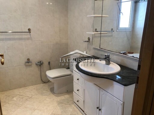 La Croisette Immobilière Tunisie vous propose à la location un appartement S+2 meublé occupant le deuxième étage d’une résidence gardée à La Marsa.