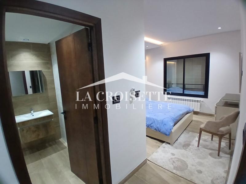 La Croisette Immobilière Tunisie vous propose à la location un appartement S+2 meublé situé dans une résidence gardée à Ain Zaghouan Nord.