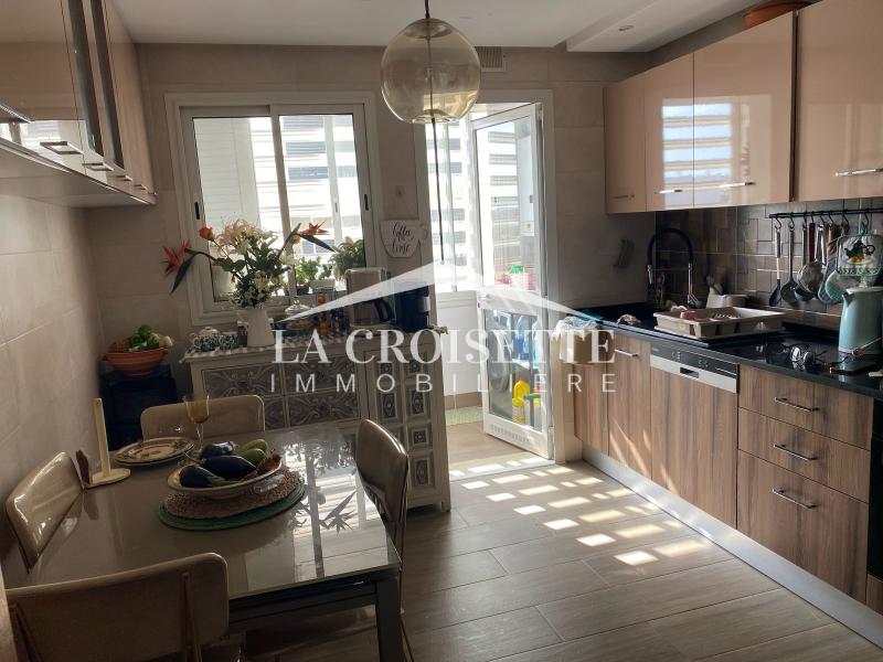 La Croisette Immobilière Tunisie vous propose à la location un appartement S+3 meublé occupant le deuxième étage d'une résidence gardée située à Ain Zaghouan Nord.