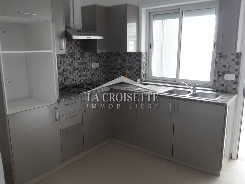 La Croisette Immobilière Tunisie vous propose à la location un appartement en S+1 occupant le premier étage d'une résidence privée à Ain Zaghouan Nord.Ce dernier se compose d'un salon, d'une cuisine bien équipée attenante à un séchoir, d'une chambre à coucher avec dressing et d'une salle d'eau douche. L'appartement est équipé du chauffage central et dispose d'une place parking au sous sol.