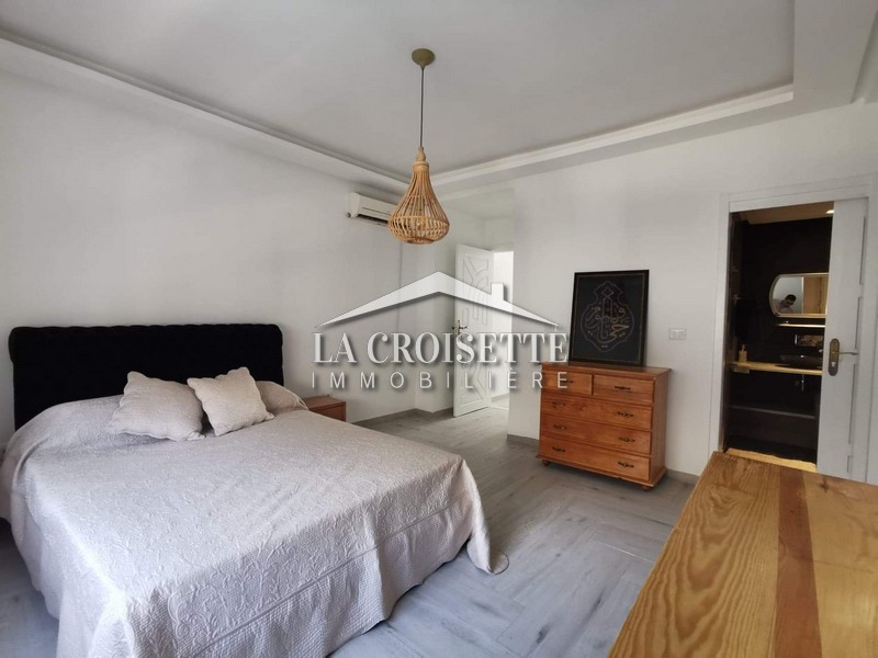 La Croisette Immobilière Tunisie vous propose à la location un appartement meublé en S+2 occupant le deuxième étage d’une résidence gardée au Lac 1. Ce dernier est composé d'un salon, d'une cuisine américaine entièrement équipée attenante à un séchoir, d'une salle d'eau invités, et de deux suites.L'appartement est équipé du chauffage central et de climatiseurs et dispose d’une place de parking au sous-sol.