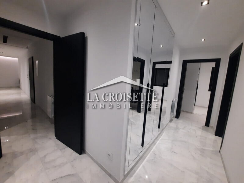 La Croisette Immobilière Tunisie vous propose à la location un appartement S+3 occupant le troisième étage d’une résidence gardée aux Jardins De Carthage.