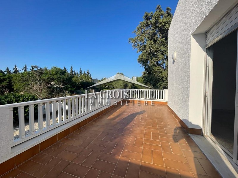La Croisette Immobilière Tunisie vous propose à la location une villa S+7 avec piscine couverte située dans un quartier résidentiel à La Soukra.
